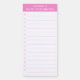 Elevate your organization game with this magnetic notepad featuring a fun and modern design. The bubblegum pinkl background and quirky phrase "wildly overcommitted" will bring a smile to your face each time you jot down your tasks. With customizable personalization options, this notepad is ideal for creating to-do lists, checklists, and grocery shopping lists. Stay on top of your daily responsibilities stylishly and efficiently with this colorful and contemporary office organization essential.
