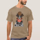 My 11 yo wore adult XL (5’7” 165#). The 8yo is small framed. She wore adult small and tied it in the back. Grandma wore adult large with long sleeve shirt underneath. Tall girl adult medium. Dark haired male adult large. Good quality dark Heather gray, Gildan brand shirt. -it was next up from basic choice and cost about $20 per shirt. Not too thick or thin. Washed and dried well, no major shrinkage. Not see-through. Can wear a bra under it fine. Screen print is just as shown and well done, front and back.