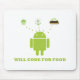 Are you willing to code for food? If you're just starting out, you might. Showcase your wry software engineer / software developer sense of humor with a dose of Android attitude with any of these Android robot (bug droid) gifts along with the caption "Will Code For Food". Includes Android peeking out of a cupcake, doughnut, and eclair -- from just a couple of years ago. Memorable software developer humor gifts for all who work with Android open source code! Note: Portions of this page are modifications based on work (http://www.android.com/branding.html) created and shared by Google and used according to terms described in the Creative Commons 3.0 Attribution License (http://creativecommons.org/licenses/by/3.0/).