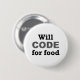 Will Code for Food button. Who doesn't love computer geek humor? Buy this funny button for yourself or as a gift for that special computer programmer in your life!