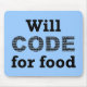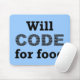 Will Code for Food mousepad. Who doesn't love computer geek humor? Buy this funny mousepad for yourself or as a gift for that special computer programmer in your life!