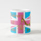Will Kate royal baby commemorative souvenir mug 1 for a girl. Background is a customized Union Jack British flag in pastel pink and blue and in the foreground a cute cartoon princess baby sits within a golden carriage. Words read Royal Delivery for Wills and Kate 2013. Get your memorial royal birth mug here. Also available for baby boy and twins