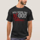 My 11 yo wore adult XL (5’7” 165#). The 8yo is small framed. She wore adult small and tied it in the back. Grandma wore adult large with long sleeve shirt underneath. Tall girl adult medium. Dark haired male adult large. Good quality dark Heather gray, Gildan brand shirt. -it was next up from basic choice and cost about $20 per shirt. Not too thick or thin. Washed and dried well, no major shrinkage. Not see-through. Can wear a bra under it fine. Screen print is just as shown and well done, front and back.