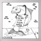 A salmon panhandling wearing a sign, "Will work for clean water."