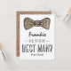 Country tweed best man card with a rustic burlap spotted bow tie, simple wording and a brown tweed fabric pattern on the reverse. These easily customizable wedding cards can be changed to suit your requirements, from adding your own personal message, to changing the font and color.