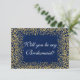 Personalized Will You Be My Bridesmaid Invitation - Vintage Glam Gold Confetti Blue Navy