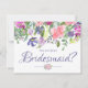 Lovely way to ask a friend to be your bridesmaid. Pink and purple watercolor flowers surrounded by a variety of greenery create a beautiful keepsake bridesmaid card. The back of the card contains beautiful typography and the small floral posy at the bottom. This bridesmaid card is part of the Promise of Spring Wedding Suite. You should be able to see coordinating items and a link on this page. If you don't just copy the following link and paste it in your browser: https://www.zazzle.com/collections/promise_of_spring_wedding_suite-119632933934202901