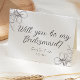 Soft and feminine, this black and white wedding bridesmaid proposal card is framed with a floral line art design. Invite your closest friends to celebrate with you with this sweet card.