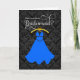 © 2015 Socialite Designs. Elegant bridesmaid gown "will you be my bridesmaid" greeting card. Write your own special message in the inside to your bridesmaid. The background has an elegant damask print in black and grey.