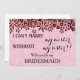 This 5" x 7" beautiful Will you be my bridesmaid? invitation card. This is best for the bride. If you looking at asking someone to be yourbridesmaid for your future wedding, then why not choose this bridesmaid cards. This customized invitation card will make your friend, sister cousin, nephew, daughter or whoever else you choose feel that extra special. This invitation is easily personalized by clicking on the customize it button under the image where you will be able to change the text, font and size. You can invite your best buddies in style with these classy invitations. It is suitable for the flower girl,maid of honor or for matron of honor. Send them this bridesmaid card.