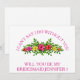 This 5" x 7" beautiful Will you be my bridesmaid? invitation card. This is best for the bride. If you looking at asking someone to be yourbridesmaid for your future wedding, then why not choose this bridesmaid cards. This customized invitation card will make your friend, sister cousin, nephew, daughter or whoever else you choose feel that extra special. This invitation is easily personalized by clicking on the customize it button under the image where you will be able to change the text, font and size. You can invite your best buddies in style with these classy invitations. It is suitable for the flower girl,maid of honor or for matron of honor. Send them this bridesmaid card.