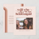 Will You Be My .. bridesmaid, maid of honor, matron of honor or flower girl wedding proposal card that will make your girls smile and leave them with a keepsake that they will enjoy for many years to come! Featuring blush pink background, touches of terra cotta and trendy typefaces. This minimal typography photo card highlights your imagery with fresh, retro typefaces. Cute poem or your choice of personalization on the reverse side. Fully customizable text, colors and backgrounds. Can be transferred to any product Zazzle carries.