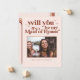 Will You Be My .. bridesmaid, maid of honor, matron of honor or flower girl wedding proposal card that will make your girls smile and leave them with a keepsake that they will enjoy for many years to come! Featuring blush pink background, touches of terra cotta and trendy typefaces. This minimal typography photo card highlights your imagery with fresh, retro typefaces. Cute poem or your choice of personalization on the reverse side. Fully customizable text, colors and backgrounds. Can be transferred to any product Zazzle carries.