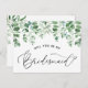 Ask your friends and family to be a part of your wedding with this floral "Will You Be My Bridesmaid?" card featuring watercolor eucalyptus with feminine calligraphy script. Matching items are available. Bridal Party Proposal card