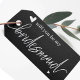 Modern Black and White Proposal gift tag for bridesmaids. Pop the question to your best friends in style with this elegant bridesmaid proposal tag. Featuring a sleek black background, modern white script font, and heart details, it’s the perfect way to make your proposal extra special. Ideal for attaching to bridesmaid gifts, maid of honor boxes, wedding party favors, and bridal shower presents. A chic and timeless keepsake your bridal party will love.