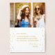 Beautiful gold foil Bridesmaid proposal wedding party card- Front is actual gold foil with gold confetti dots borders and gold gemstones tier wedding cake featured. Bottom reads 'Will You Be My Bridesmaid?', in elegant, calligraphy type, matching gold script. Inside has personalized message in matching gold color in modern, elegant style requesting your special friend's participation in your wedding day, including personalized names. Message is completely customizable. Inside top has personalized photo (of you and) your prospective bridesmaid, or delete the sample photo completely. Inside has coordinating faux gold foil confetti dots along the outer borders, including overlaid on your photo. Elegant wedding party bridesmaid cards perfect for a formal wedding and gold wedding colors. Edit them for matching bridal party request cards for everyone- maid of honor, flower girl, etc. We have coordinating paper wedding supplies and decor in our Zazzle.com/angela65 shop.