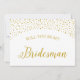 Will you be my bridesman wedding proposal card in gold confetti and calligraphy text. For a cohesive look, visit my store to see the whole collections of our confetti wedding signs.