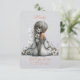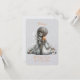 A beautiful Flower Girl proposal card with a young cartoon girl dressed in silver sitting with her back to us.