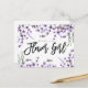 A pretty boho lavender floral design will you be my flower girl postcard. Easy to change the text details to your own. Lots of matching stationery in this pretty collection. Please visit my shop to see the full range including maid of honor and bridesmaid.