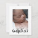 Ask your best friend, sister or cousin to be your baby's godmother with this gorgeous minimalist 2 sided photo card, Featuring a cute photo of your baby, asking the question and on the back another photo with a template message, the font styles and background color can be changed by clicking on the customize further link after personalizing.