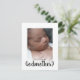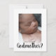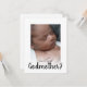 Ask your best friend, sister or cousin to be your baby's godmother with this gorgeous minimalist 2 sided photo card, Featuring a cute photo of your baby, asking the question and on the back another photo with a template message, the font styles and background color can be changed by clicking on the customize further link after personalizing.