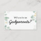 Ask your friends and loved ones to be your little one's godparent with our modern and stylish godparents proposal card. This design features an airy illustration of light green leaves and yellow flower buds on a white background and the text "Will you be my Godparents?" in a matching combo of handwriting script and serif fonts. Personalize with your own details or custom text.
