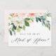 Ask your bridesmaids in style with a beautiful card! This greeting card features lovely watercolor florals and a mix of modern calligraphy, making it easy for your best friends to say "yes!".