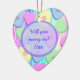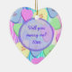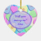 This heart shaped keepsake ornament has a colorful candy hearts theme on the front and back! Personalize the text to suit your occasion. Customizable text reads: "Will You Marry Me - 20xx". A unique way to pop the question! This vibrant keepsake ornament makes an ideal gift for that special occasion!