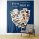 Heart Shaped photo collage backdrop with 20 of your favorite photos. Will You Marry Me? is lettered in swirly calligraphy and your photos are displayed in square format on snapshot style backgrounds in a heart shape picture montage. The design is on a blue background color, which you are welcome to edit.