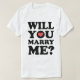 Looking for a unique way to pop the question? Worried you'll be tongue-tied? This fun proposal t-shirt will do all the work for you. The t-shirt reads "Will you marry me" in a big, bold font with a heart accent.
