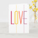 Modern colorful marriage proposal card with big bold LOVE typography script in dark red burgundy, yellow, coral orange and lilac purple on the front side and the question and signature inside and on the back side. ++++++++++++++++ Just personalize it with her name, your signature and the date!