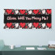 Personalized marriage proposal banner. Pretty red, black and white hearts and flowers pattern background.