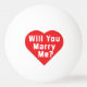 Surprise your partner during a game of table tennis with this proposal ping pong ball. A fun and memorable way to pop the question, and a cute story to tell people how you got engaged to the love of your life! Features a red heart with the words "Will You Marry Me?" written inside.