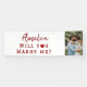 Will you marry me Romantic Proposal Photo Banner. Will you marry me in modern red typography with a beautiful red heart on a white background. Add your name and a photo.