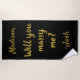 Will you marry me Wedding Proposal Black and Gold Beach Towel