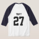 I bought the Men's Basic 3/4 Sleeve Raglan T-Shirt, White/Navy. It arrived on time for a gift and is of a great quality and fits perfectly! So cute! Zazzle has done it again! The printing was clear and filled in solidly.