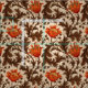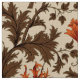 Fabric in a vintage William Morris floral damask pattern of anemone flowers and leaves, digitally enhanced and colored - deep chocolate brown leaves, and flowers in shades of rust orange and soft gold on a medium beige background