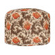 Pouf in a vintage William Morris floral damask pattern of anemone flowers and leaves, digitally enhanced and colored - deep chocolate brown leaves, and flowers in shades of rust orange and soft gold on a medium beige background