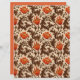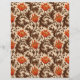 Paper in a vintage William Morris floral damask pattern of anemone flowers and leaves- deep chocolate brown leaves, and flowers in shades of rust orange and soft gold, on a medium beige background