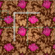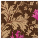 Fabric in a vintage William Morris floral damask pattern of anemone flowers and leaves, digitally enhanced and colored - light coffee brown leaves, and flowers in shades of deep fuchsia and coral pink on a dark chocolate brown background