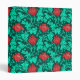 Binder in a vintage William Morris floral damask pattern of anemone flowers and leaves, digitally enhanced and colored - turquoise / peacock leaves, and flowers in shades of deep red and coral on a dark teal green background