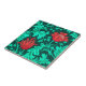 Ceramic tile in a vintage William Morris floral damask pattern of anemone flowers and leaves, digitally enhanced and colored - turquoise / peacock leaves, and flowers in shades of deep red and coral on a dark teal green background