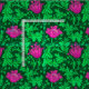 Fabric in a vintage William Morris floral damask pattern of anemone flowers and leaves, digitally enhanced and colored - emerald green leaves, and flowers in shades of fuchsia pink on a dark emerald green background