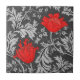 Ceramic tile in a vintage William Morris floral damask pattern of anemone flowers and leaves, digitally enhanced and colored - light silver gray / grey leaves, and flowers in shades of deep lipstick red on a dark graphite gray background