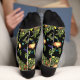 This fun Halloween socks are bright and colorful. The small print is crisp and shows the fun details. The softness of the socks feels nice on my feet and ankles. .