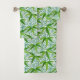Towel set in a vintage William Morris print of bamboo leaves and tendrils, digitally enhanced and colored in a soft, textured, pastel crayon effect - shades of leaf green, accented with deep teal green, on a white background