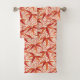 Towel set in a vintage William Morris print of bamboo leaves and tendrils, digitally enhanced and colored in a soft, textured, pastel crayon effect - shades of medium to dark mandarin orange and rust on a white background