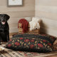 This elegant dog bed is a beautiful, intricate William Morris floral pattern featuring stylized flowers in rich red, black, and gold against a teal background. Add your dog's name for a personal touch. Perfect for adding timeless Arts Crafts decor style to any room. This classic, rich design is ideal for fans of historic textile prints. Created by Simply Farmhouse Press.