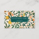 WILLIAM MORRIS BOTANICAL PATTERN BUSINESS CARD WITH POMEGRANATE FRUIT DESIGN