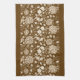 Kitchen towel in a vintage William Morris, Art Nouveau, floral print of carnations, buds and leaves, in cream and beige on a deep chocolate brown background